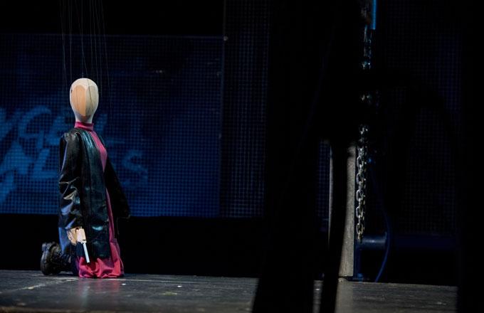 Die Köpfe unserer Marionetten, noch nicht bewegt, scheinen ausdruckslos, da ist kein Gesicht, Nase Augen Mund. Sie geben keine Haltung vor, keine Emotion, geben der Figur keinen Charakter. Ihre Gesichter sind Projektionsfläche, offen für jeden Ausdruck, und der kann in jeder Sekunde neu und ganz anders entstehen und sich auch völlig widersprüchlich entwickeln. Das Empfinden, die Fantasie der Zuschauer wird nicht eingeschränkt.
