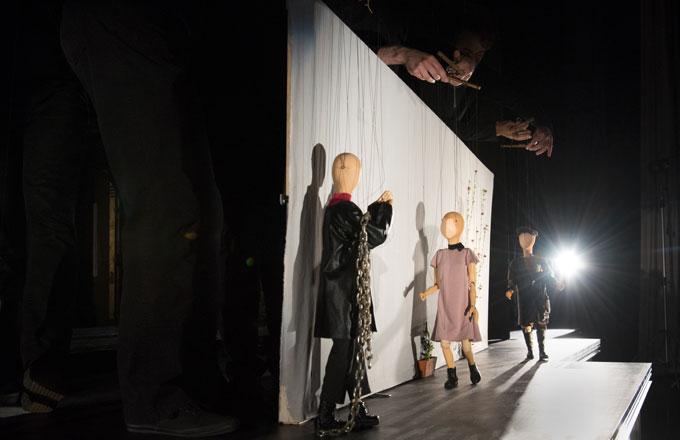 Marionettenspieler machen mit ihren Händen, dem Tanz ihrer Finger, dass Träume sichtbar werden